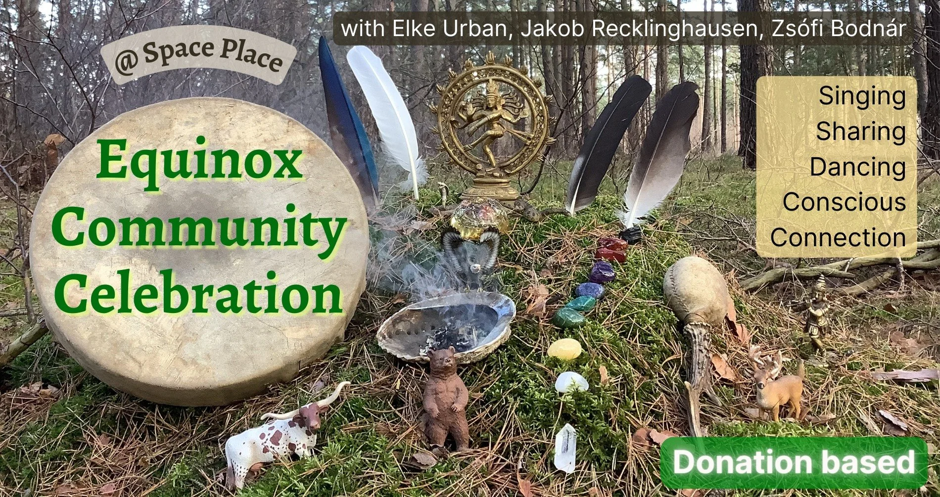 We invite you to welcome Spring and celebrate the equinox together, to enjoy aliveness and love of life in community. The evening will be about a conscious passage into the next season, connecting in community, exploring polarity and feeling and embodying the inner masculine and feminine. An evening full of worship, relating, singing, dancing, connection - held in a ritualistic framework. Zsófi, Jakob and Elke will guide you through the evening with their different qualities as space holders.